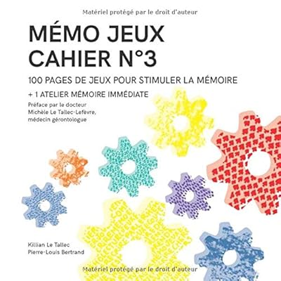 www.memojeux.com Ce troisième cahier propose 100 nouvelles pages de jeux pour stimuler la mémoire. Les joueurs à l’aise –ou accompagnés– trouveront dans les 20 dernières pages des jeux d’une difficulté supérieure.Le nouvel atelier Mémo suite sollicite la mémoire immédiate dans le cadre d’une activité à deux participants ou plus.Ce cahier, comme ses prédécesseurs, est spécifiquement conçu et adapté pour les seniors connaissant des troubles de la mémoire. Il est aussi un support d’échange efficace entre le joueur et son entourage : famille, aidants, etc.